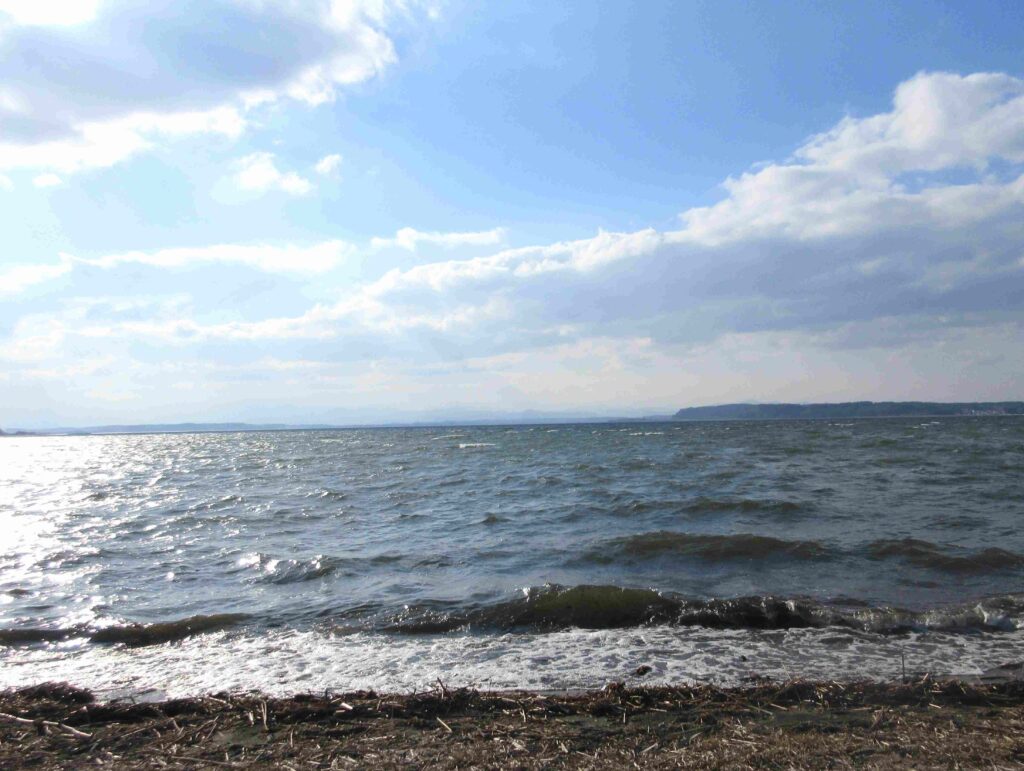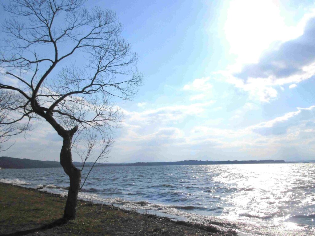 湖沿いを走っていると「乙女の像」という看板を見つけたので、駐車場(冬季無料)に車を停めて湖沿いを歩き始めましたが、「乙女の像まで徒歩5分」の看板を見て立ち止まりました。徒歩5分…この日は風が強く、寒く、花粉も厳しく、長時間運転で少々疲れていたので断念。まあ、いっかと。先を見た感じ、どこに像があるのかわかりませんでした。湖のほとりを歩けるのは、良いと思います。温かく、風が無く、花粉の少ない時期がおすすめです。