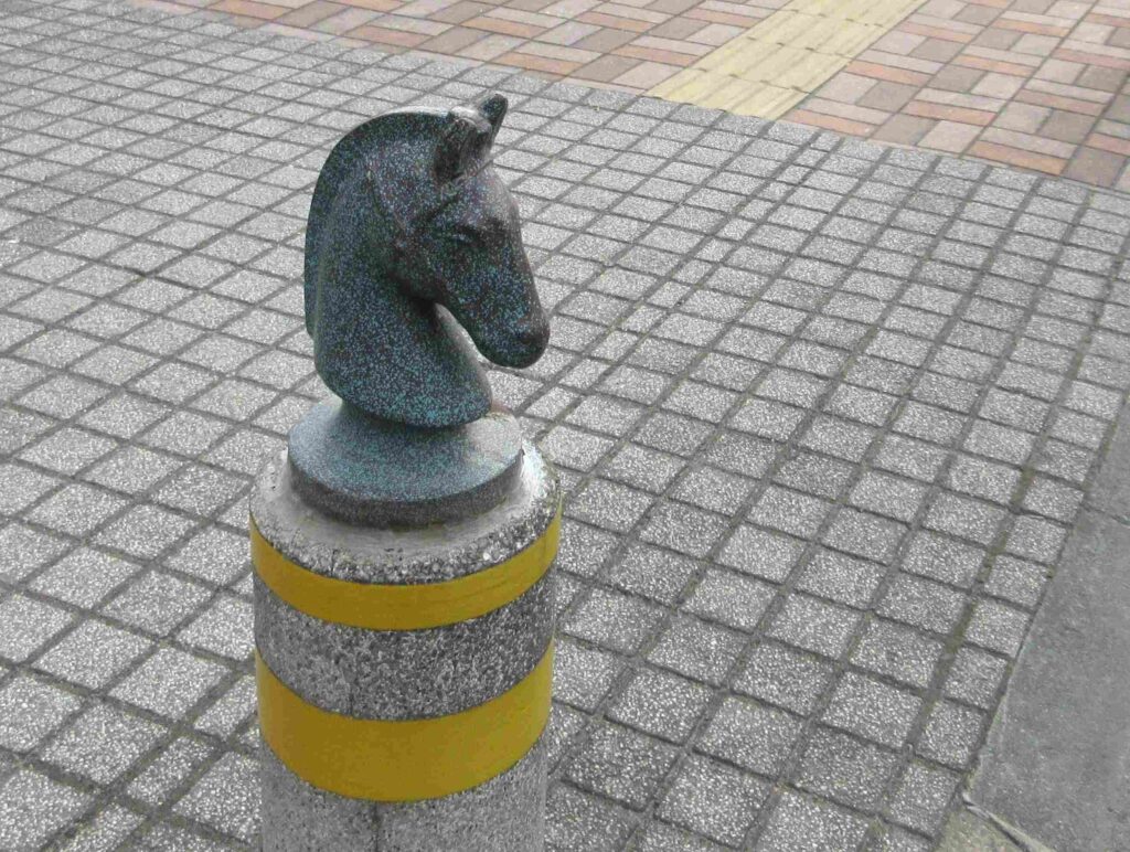 道路沿いのポールの上に馬の頭。オシャレです。